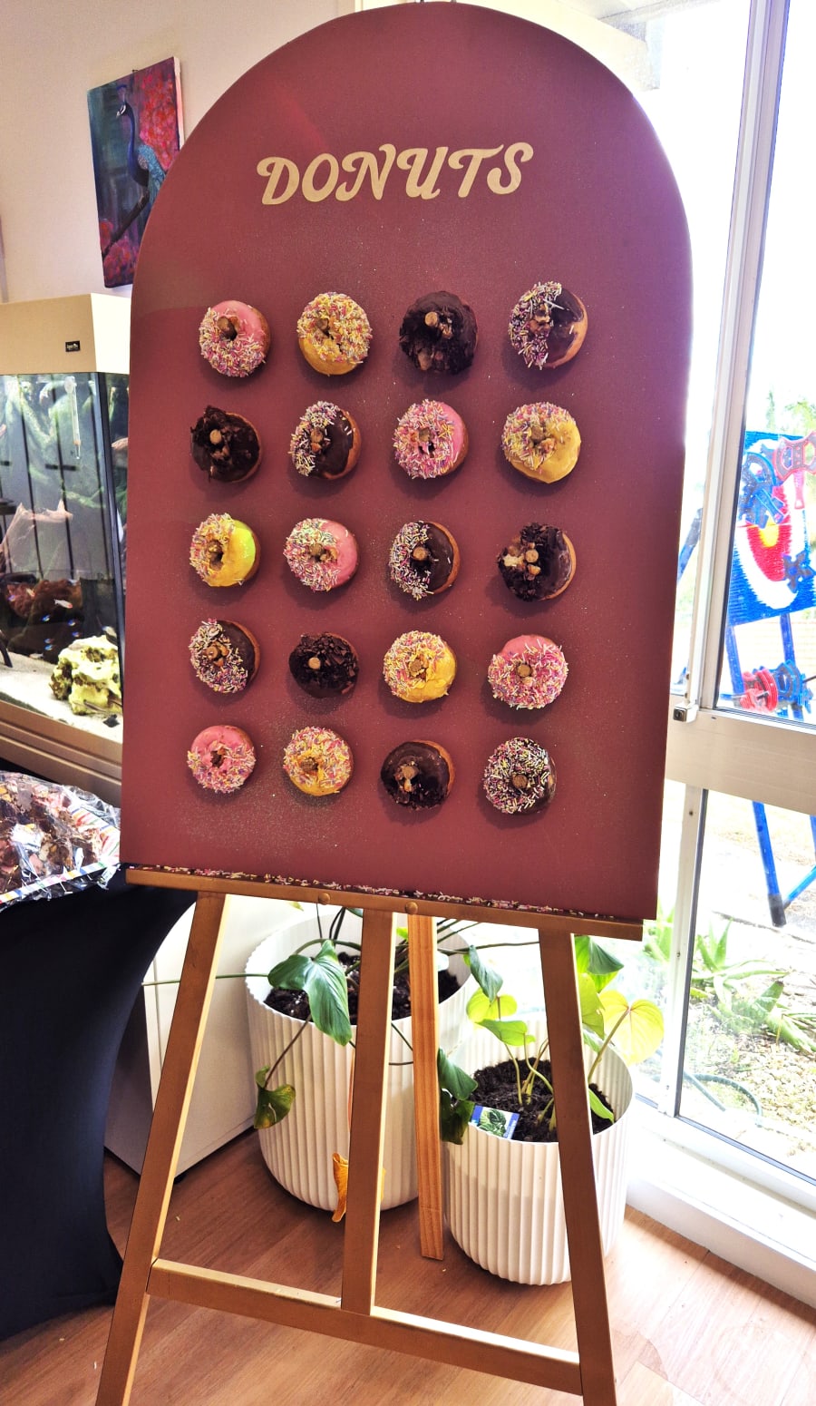 Looking to add a unique, delicious, and interactive element to your next celebration? Our Donut Wall is the perfect addition to birthdays, weddings, baby showers, corporate events, and more! This stunning display not only serves as a sweet treat for your guests but also acts as a charming focal point that will have everyone reaching for their phones to snap a picture.