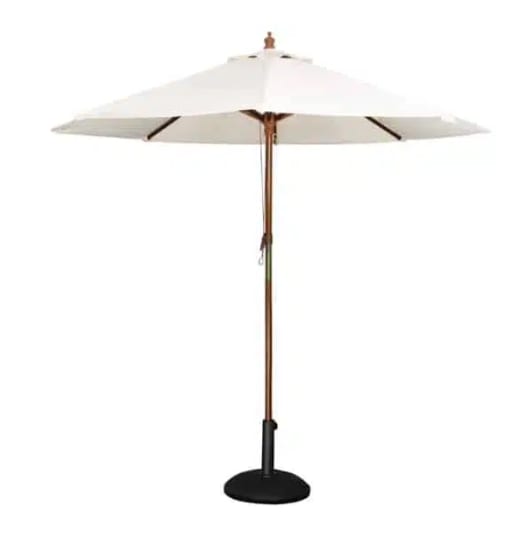 This stylish market umbrella, will provide portable shade for hot summer days. The 3 meter round canopy, will give ample shade over your dining table or secured in an umbrella base.