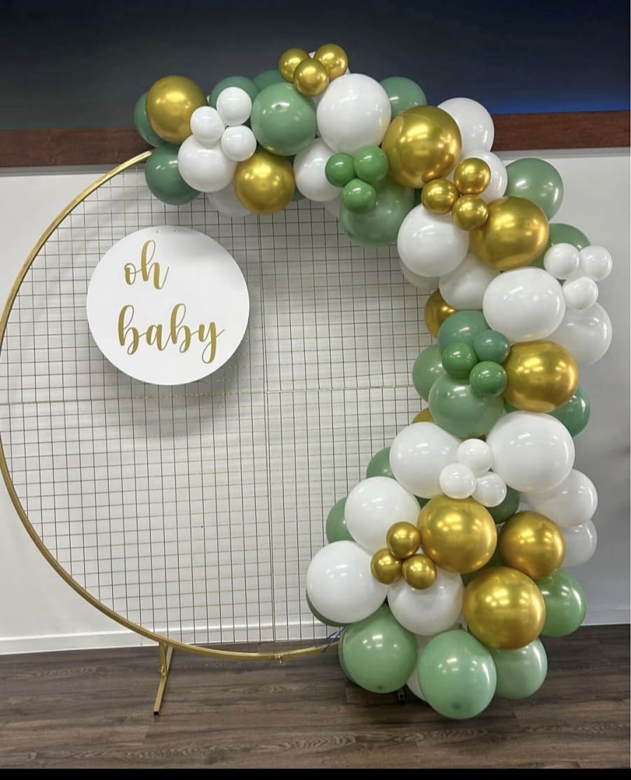 Looking to add a touch of elegance and whimsy to your special occasion? Our Gold Arch with Balloon Garland is the perfect centerpiece that promises to captivate your guests! Whether you're hosting a wedding, birthday, corporate event, or any celebration, this beautiful arch adorned with a vibrant balloon garland is guaranteed to make a statement.