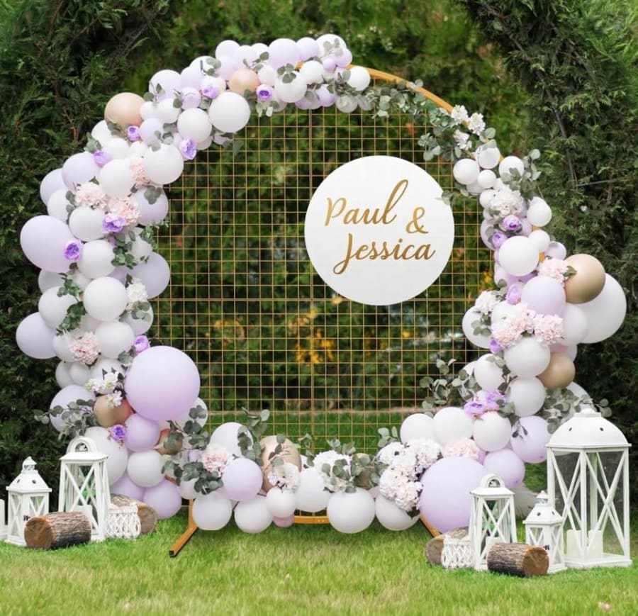 2m Round Mesh Balloon Arch on stand - Gold
