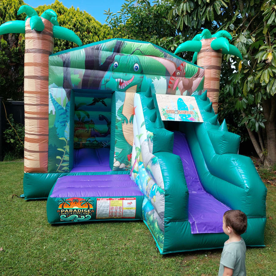 Turn your party into a Jurassic adventure with our Jumping Castle - Dinosaur! Featuring stunning dinosaur graphics and a vibrant prehistoric landscape, this bouncy castle invites children to leap, laugh, and imagine in a world lost to time. Whether you're organizing a birthday bash, school fête, or community event, this dinosaur-themed inflatable will be the highlight, captivating every young paleontologist and dino fan.